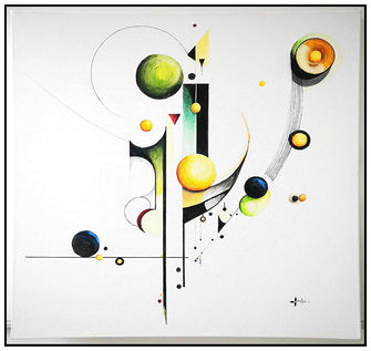 Dans ces toiles inspirées de Kandinsky, les lignes dansent avec une grâce infinie, tracées avec une pureté presque céleste. Les formes rondes émergent comme des éclats de lune, comme un nouveau soleil, évoquant la douceur des rêves et la fluidité des émotions. Chaque courbe, chaque arabesque, raconte une histoire d'harmonie et de résonance, où la simplicité des formes cache une profondeur mystique. Sous le pinceau de Laurent Balpe, la géométrie devient poésie, et la symphonie des couleurs se fond dans une symétrie enchanteresse. Ces peintures, véritables odes à la simplicité, nous invitent à contempler l'essence même de la beauté, dans un élan vers la pureté de l'âme et la sincérité de l'expression artistique.